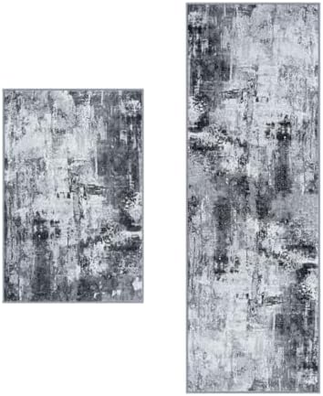 Elevate your home with our stunning 2 x 6 runner rug designed for indoor entryways. Featuring dynamic splashes of grey, black, and white, this contemporary long hallway runner effortlessly enhances any interior design style.