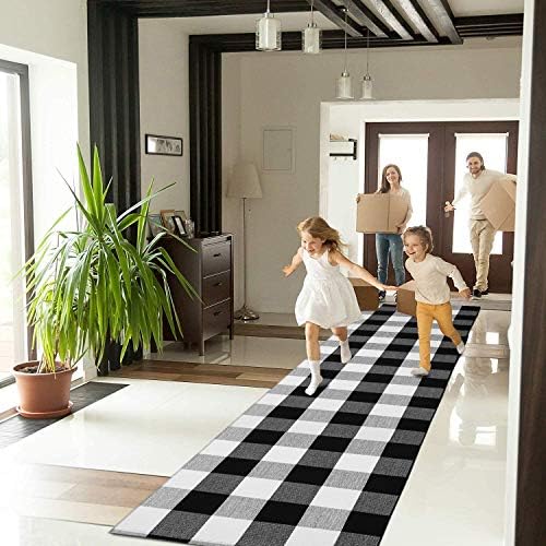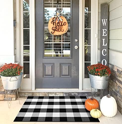 Experience the luxury of 100% premium cotton with the KOZYFLY black and white front door mat. Crafted by hand, this mat features a low pile thickness of only 0.14 inches, making it 20% denser than standard outdoor mats. Its softness underfoot will greet you warmly each time you step through your door.
